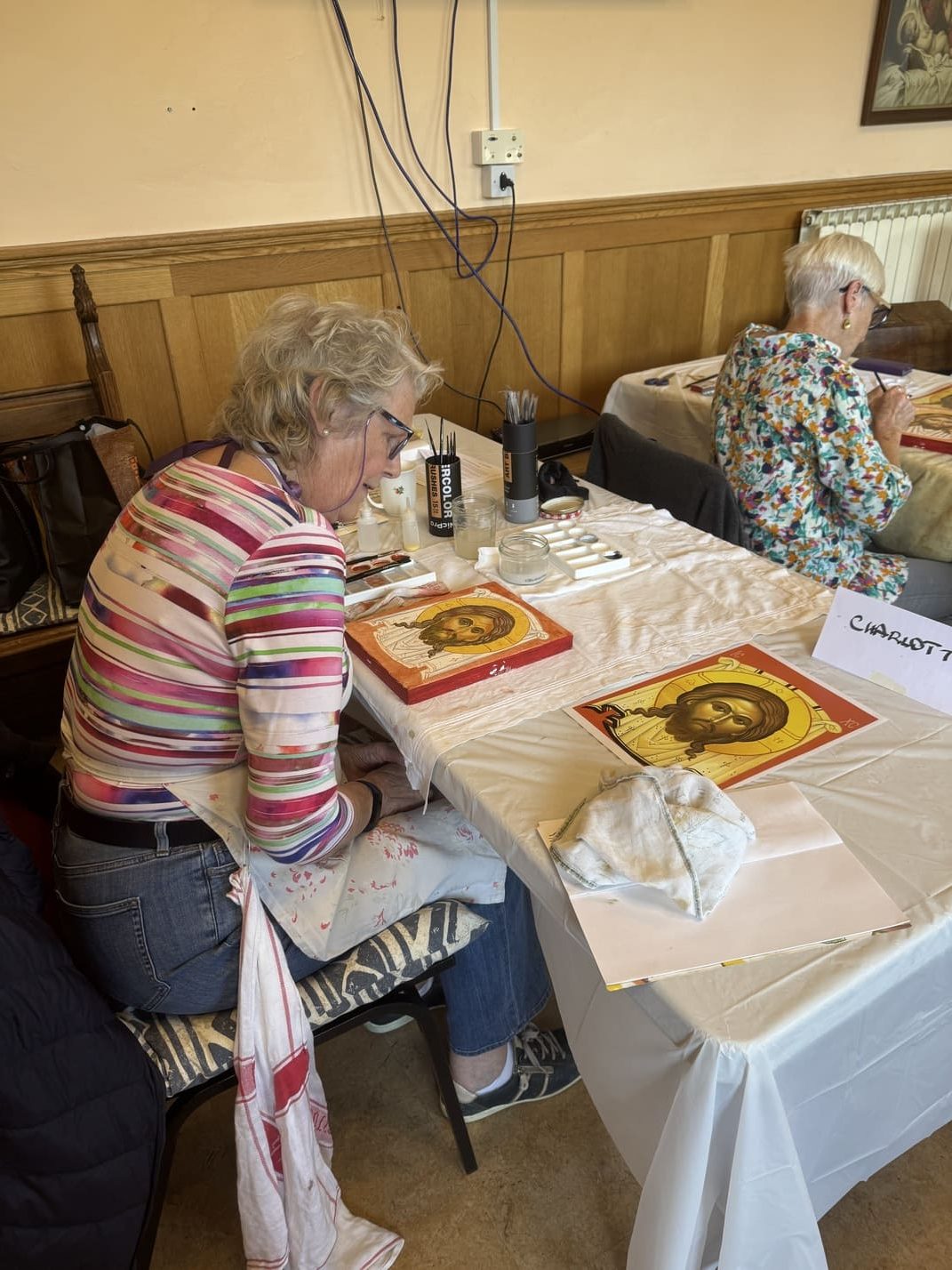 The subject of this workshop is the Mandylion. (See image below). The Mandylion, meaning ‘small cloth’ or ‘towel’ is similar to Veronica’s veil and believed to have touched the face of Christ, retaining his features on the cloth. [No gold leaf is used on the beginner’s workshop.] This will take place at St Cuthbert’s Conference Centre and accommodation is available at Northgate house.